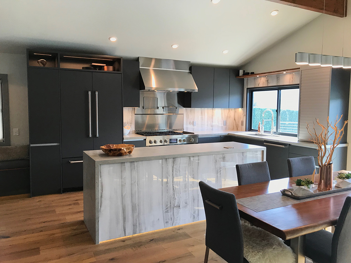 We were fortunate with this project to be involved in the blueprint stage. That allowed us to reduce the amount of customization with our cabinets because we could call out soffit heights, wall lengths, and window locations. This was a wonderful culmination of the client, architect and designer working together in a collective effort to create an amazing home project in La Jolla, CA.