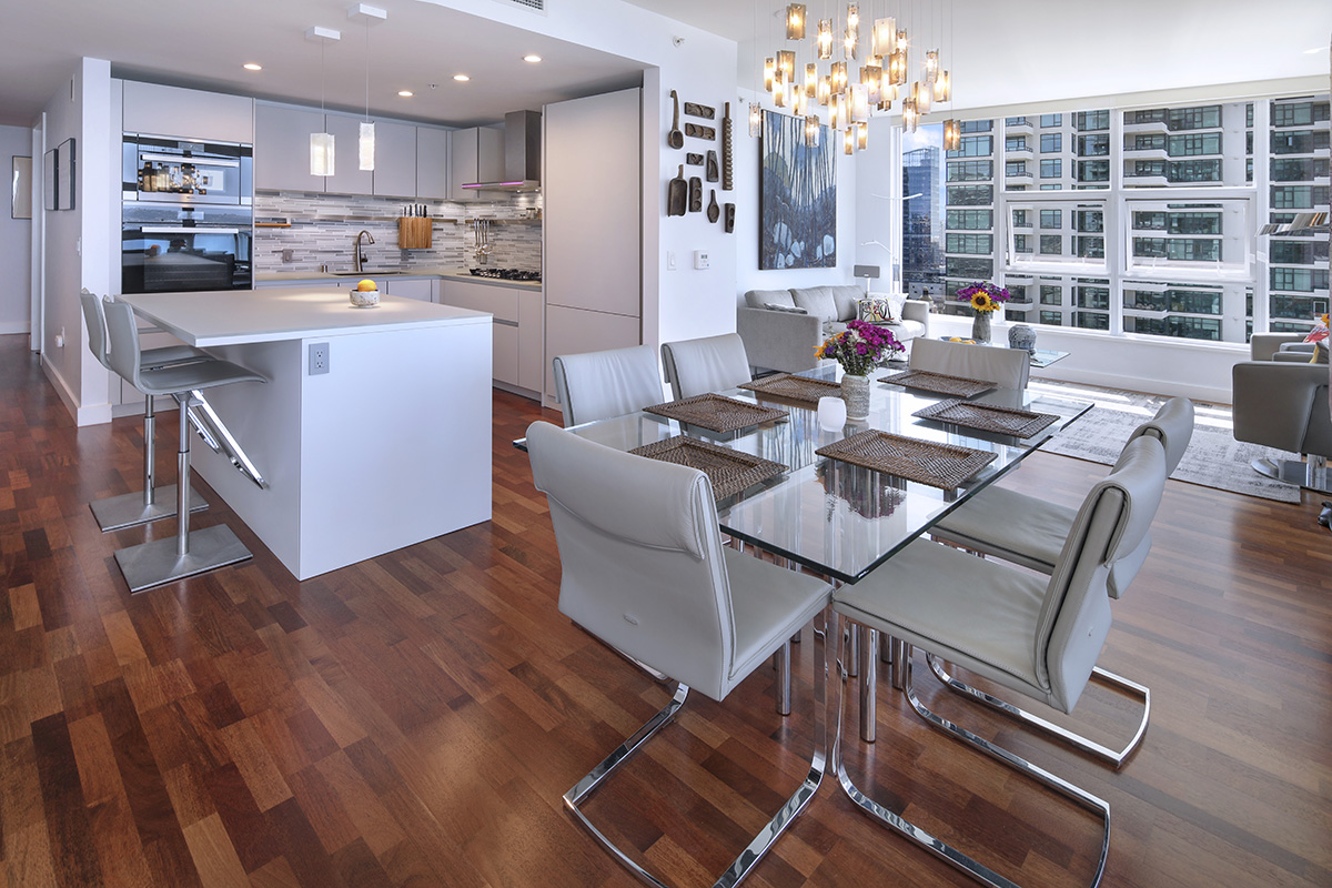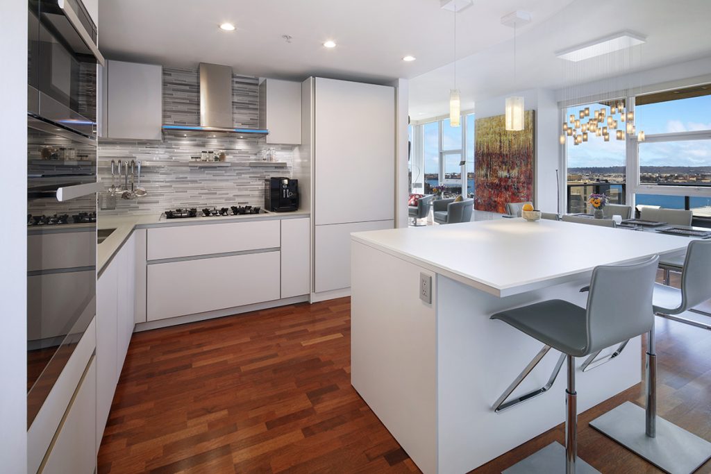 Our homeowners purchased a high-rise condo with a stunning view. The only thing keeping them from falling in love with it was a dark kitchen in the center of the space they called the ‘dark hole’. We kept the remodel simple by keeping the same foot-print of the kitchen but adding new cabinets, countertops and appliances.